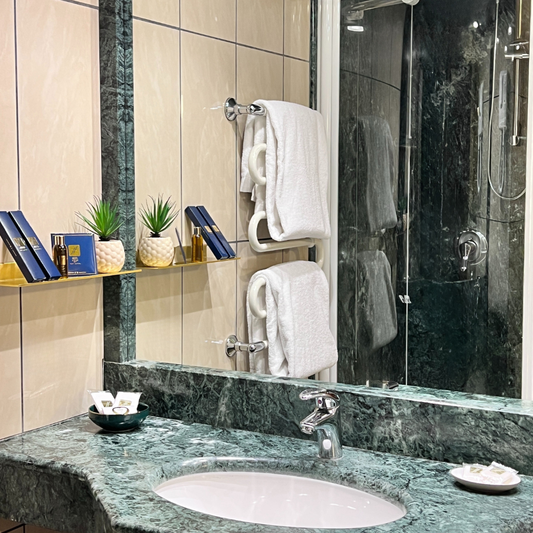 Con le sue pareti decorate come l'onice, ti offre un'atmosfera di lusso e sofisticatezza...